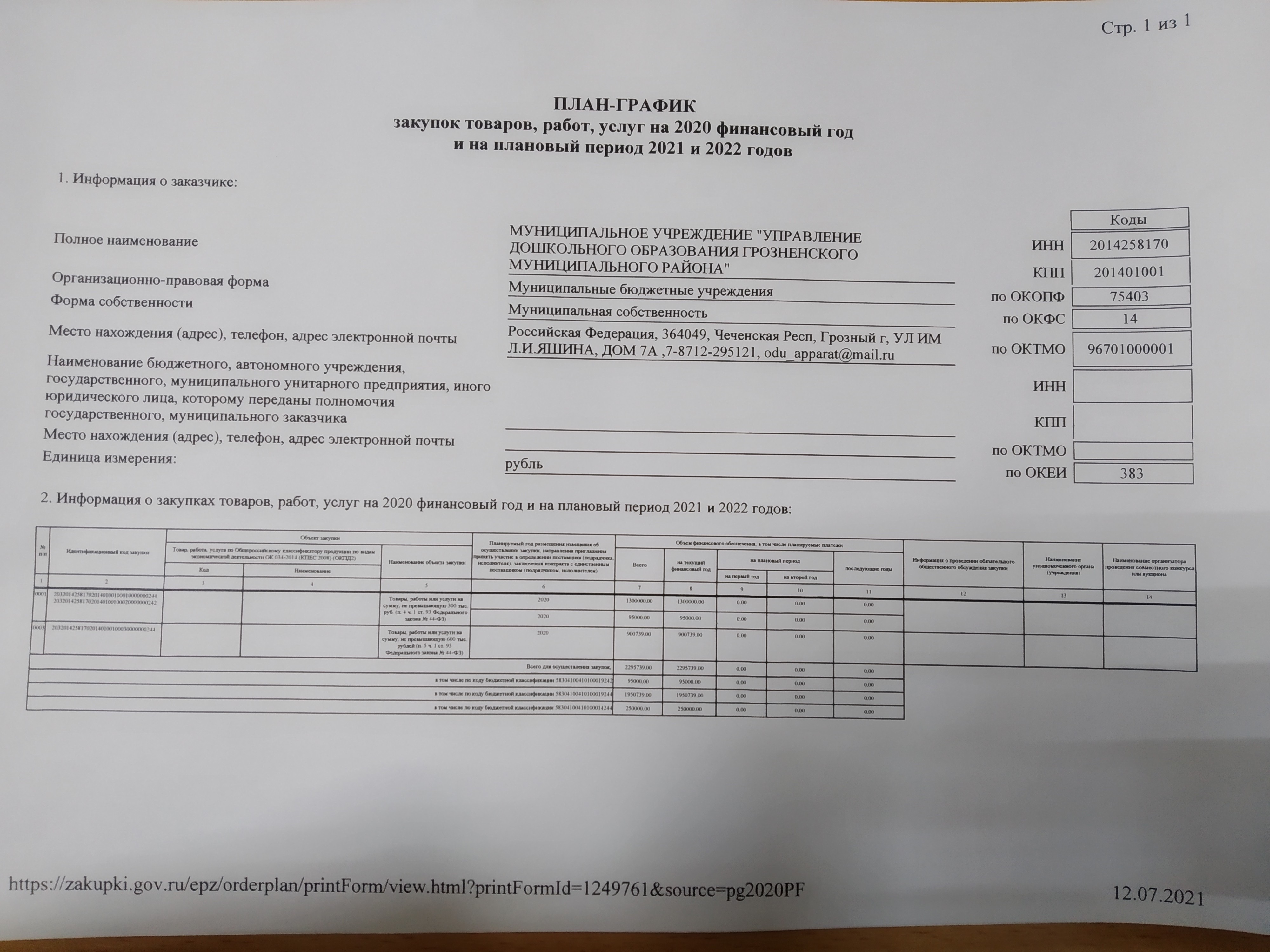 Приказ о закреплении территорий Грозненского муниципального района Чеченской Республики за муниципальными бюджетными дошкольными образовательными учреждениями Грозненского муниципального района Чеченской Республики