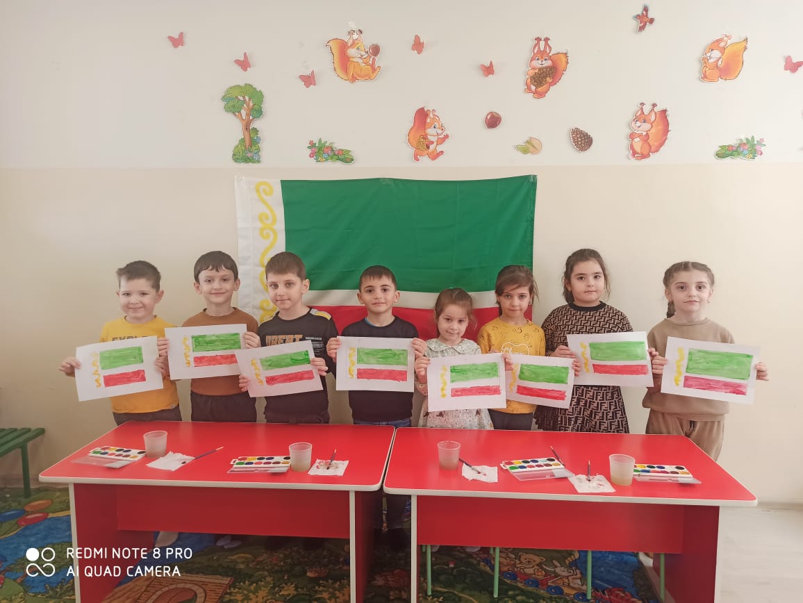 Выставка детских рисунков в старшей группе: «Флаг Чеченской республики»